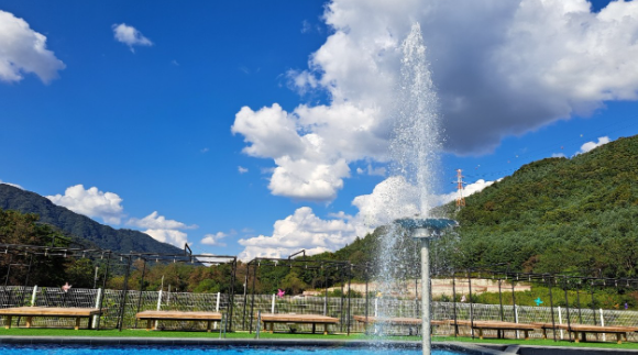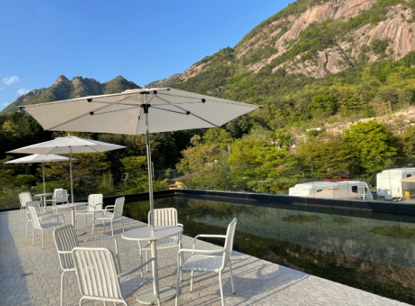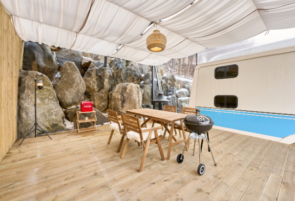 글램파크 글램핑 카라반은 아무래도 장점은 사진에서 보실 수 있듯이 사계절 내내 온수 수영이 가능하다는 점입니다.