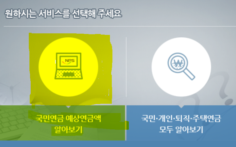 4) 좌측에 원하시는 서비스를 선택하라고 나오게 되고, '국민연금 예상연금액 알아보기'를 눌러줍니다.