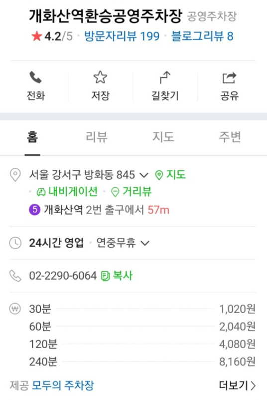 저는 주저않고 개화산역환승공영주차장을 이용할 것 같습니다.