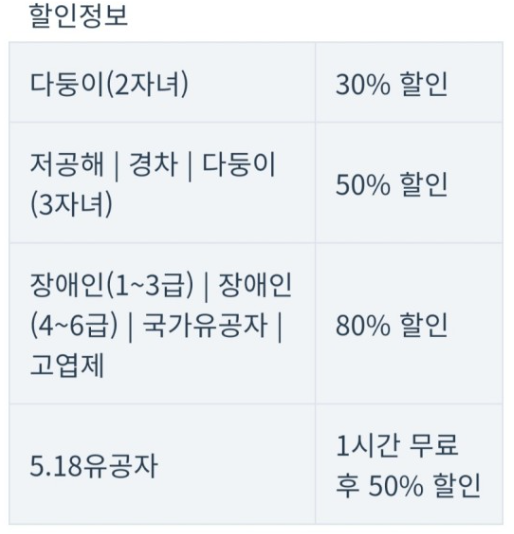 전기차나 국가유공자로 할인을 받으면 제일! 완전 제일! 저렴하게 다녀올 수 있습니다.