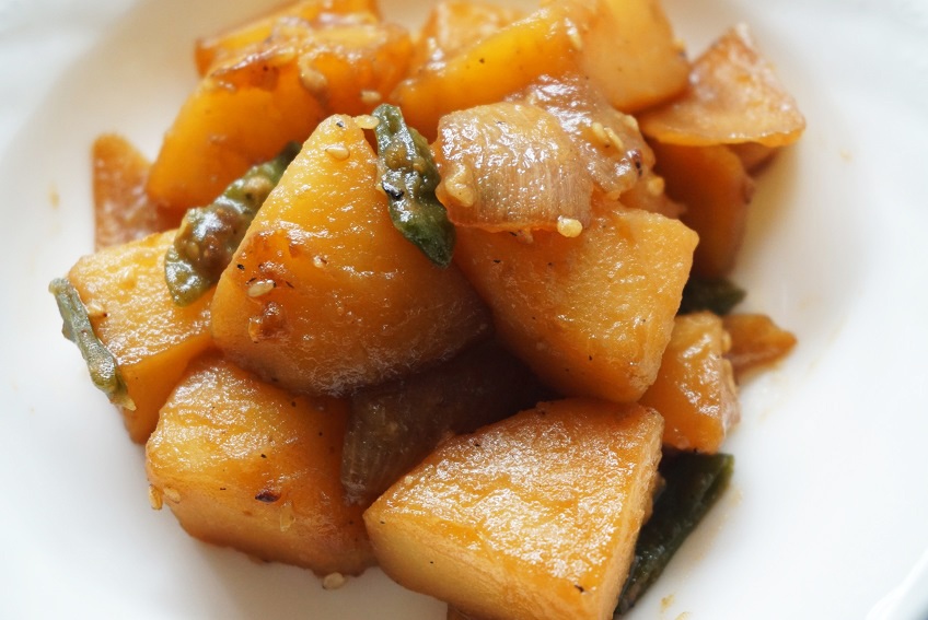 호박은 부드럽고 달콤한 맛이 특징입니다. 기름에 볶아 소금과 후추로 간을 하면 간단하면서도 맛있는 반찬이 됩니다