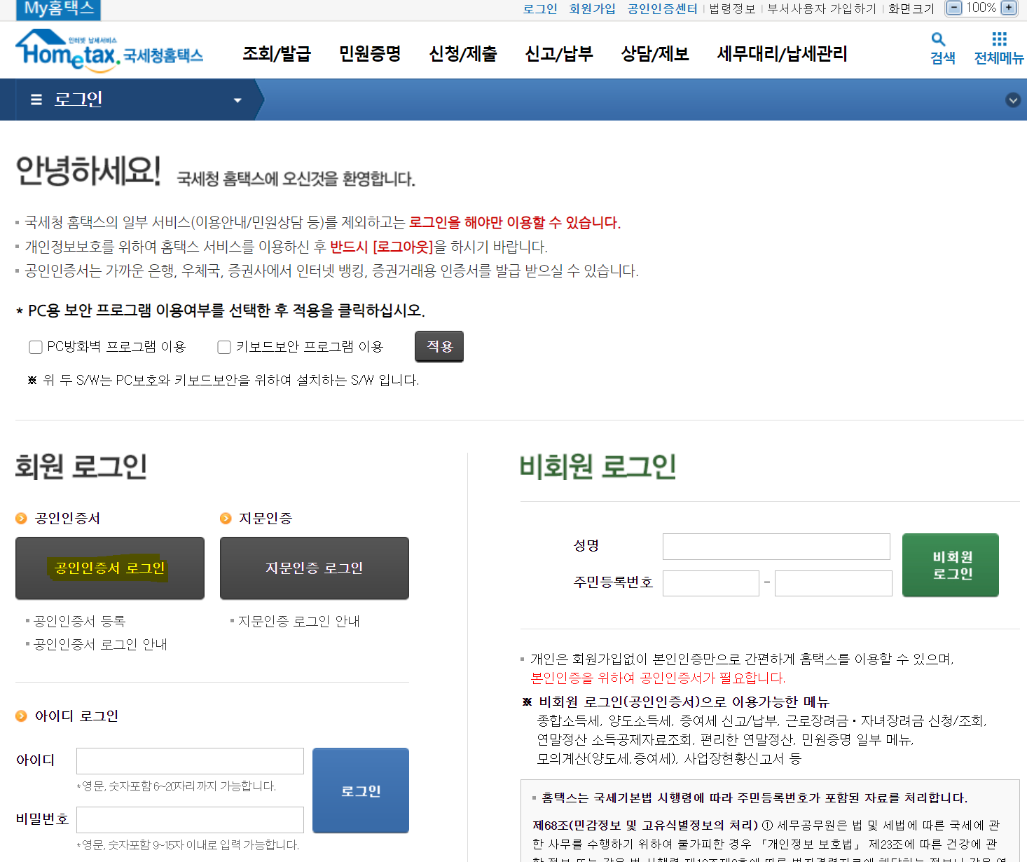 그러면 공인인증서로 로그인을 눌러서 공인인증서로 로그인을 하면 됩니다.