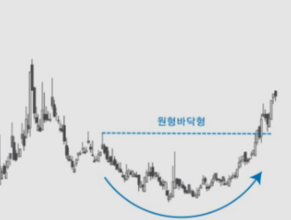 조금 전 소개드린 원형 바닥 패턴처럼 횡보를 하고있다가 거래량을 동반하는 장대양봉이 나오고 올라갑니다.