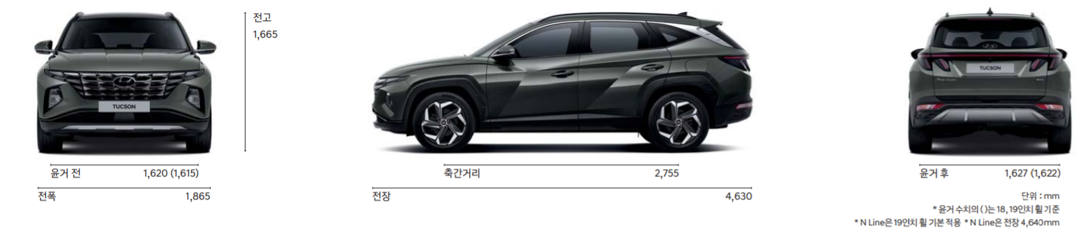 그렇다면 동급 경쟁 차종인 투싼의 크기도 한번 간단하게 확인해보겠습니다.