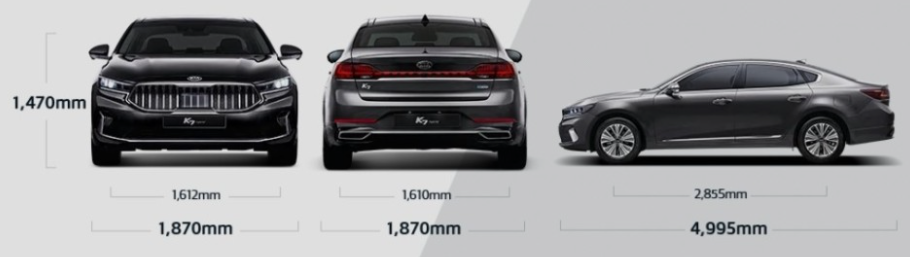 차량 정보상으로는 기본 K7보다는 조금 크고 K9보다는 작은 사이즈로 생각하시면 됩니다.