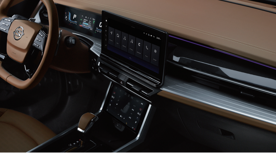 3분할 와이드 디지털 클러스터 뿐만 아니라, 와이드 인포테인먼트 시스템과 공조 컨트롤 패널까지 디스플레이로 적용하여