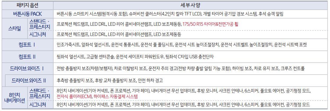 우리가 경차를 타는 이유가 저렴하고 연비좋고 마실의 최고봉 아니겠습니까? 그런데 풀옵까지 뽑을 이유가 저는 없다고 개인적으로 생각을 합니다. 딱 중간인 '프레스티지'정도를 추천합니다.