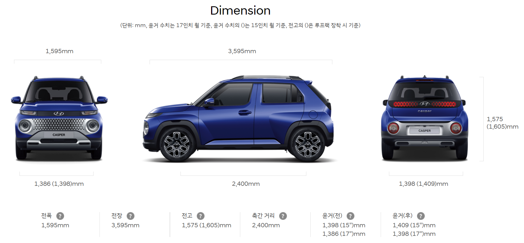 다음으로는 캐스퍼의 제원을 한번 보겠습니다.