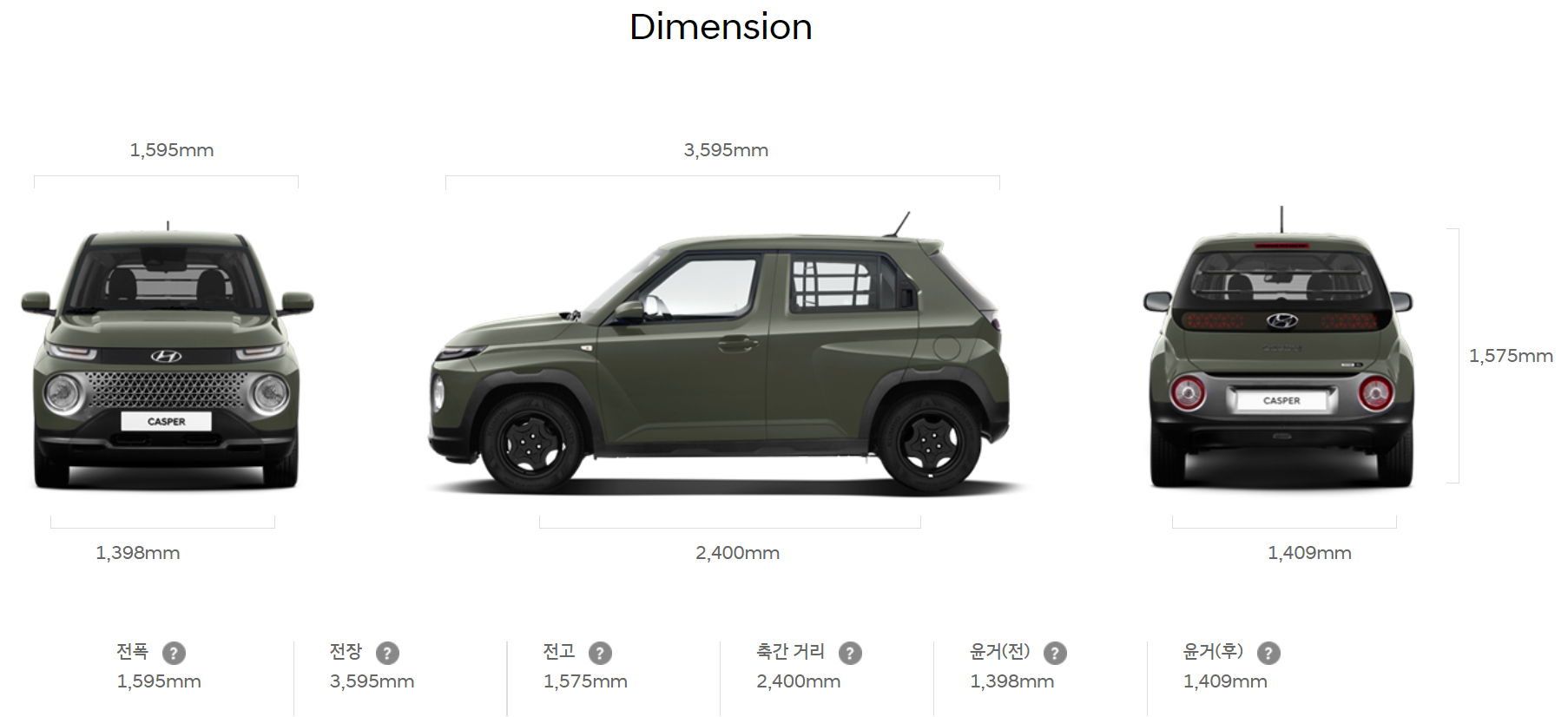 다음으로는 캐스퍼의 제원을 한번 보겠습니다.